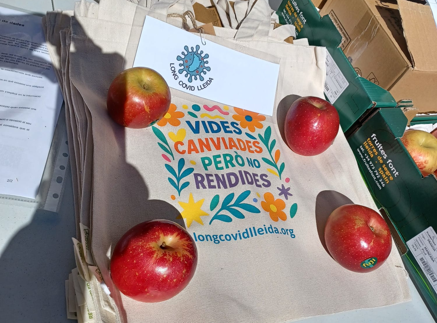 L’Associació Long Covid Lleida vol agrair especialment la col·laboració de LleidaJove – La Palma i de l’Ajuntament de Lleida, així com el suport de Fruites Font i Golosinas Victor, que amb la seva ajuda fan possible continuar donant visibilitat a aquesta realitat.